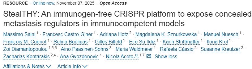 这套 隐形 CRISPR 技术的应用前景远超癌症研究。它不仅能在免疫健全小鼠、人源化小鼠中开展精准的基因筛选,还可用于个性化医疗,比如构建患者特异性肿瘤模型,筛选最有效的治疗靶点;在自身免疫疾病、CAR-T 细胞工程等领域,也能避免外源基因引发的免疫干扰。Aceto 教授强调: 过去我们因免疫干扰错过了许多关键靶点,而 StealTHY 让我们第一次在接近患者的生理环境中,看清了癌症转移的真实机制。