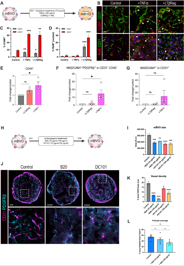 图4:利用炎症信号和抗血管生成药物对小鼠血液血管类器官进行体外调控